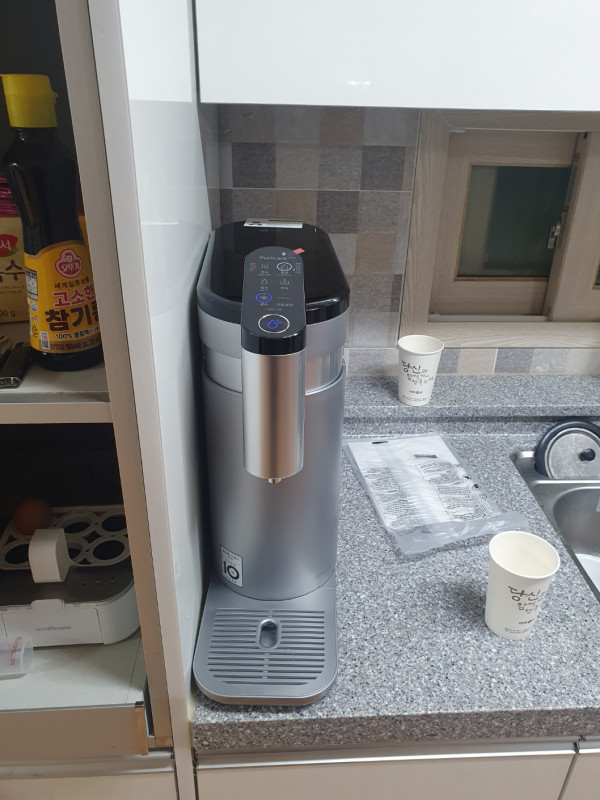 정수기 설치하고 물 좀 빼고 바로 한잔 마셨는데 캬